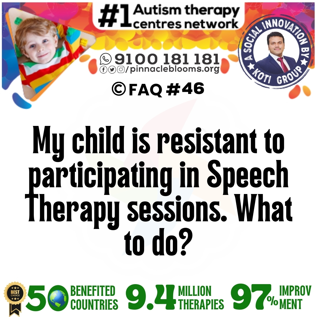 FAQ #46. My child is resistant to participating in Speech Therapy sessions. What to do?